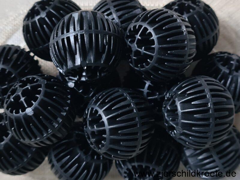Bioigel und Biobälle werden insbesondere in großen Rieselfiltern eingesetzt und haben in der Wasserschildkröten-Aquaristik kaum eine Bedeutung. Es gibt sie in den verschiedensten Ausführungen und Farben. Inzwischen gibt es sie auch mit größerer Oberfläche, so dass sie für Topf-Außenfilter geeignet wären. Die älteren, und viel günstigeren, Modelle mit kleiner Oberfläche sollte man dort nicht verwenden.