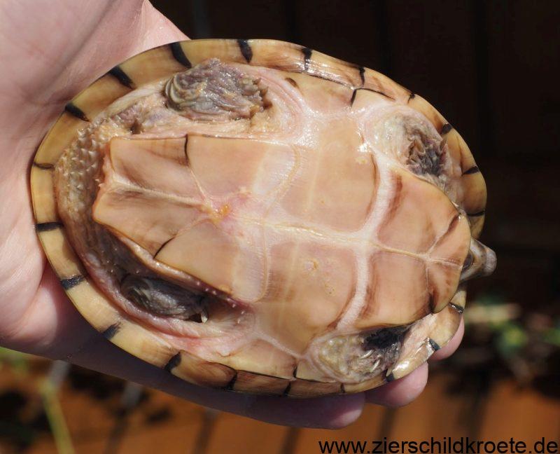 - Plastron (Bauchpanzer) einfarbig gelblich ohne Zeichnung