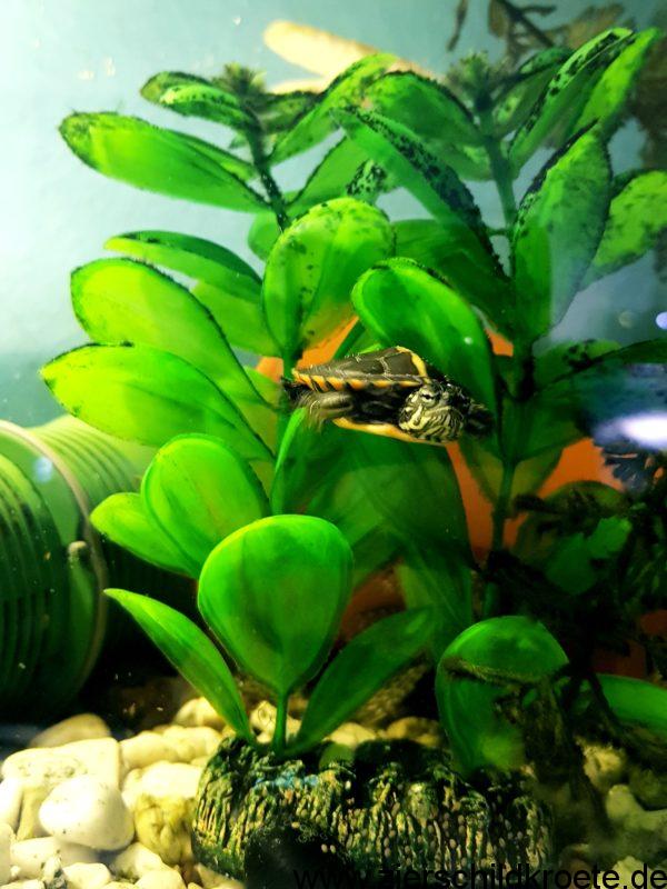 Außerdem solltest du darauf achten, dass die Kunstpflanzen am Boden einen schweren Fuß haben und nicht mit einer Schale im Kies verankert werden müssen. Denn sonst buddeln die Wasserschildkröten sie ruck zuck aus.