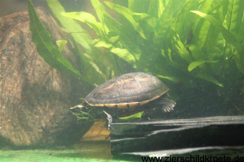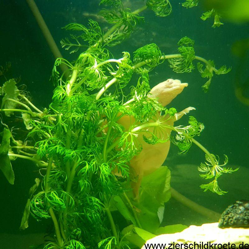 Außerdem sind Schwimmpflanzen wie Wasserlinsen oder Froschbiss gut geeignet. Diese beschatten das Wasser im Aquarium auch, dadurch fühlen sich die Wasserschildkröten wohler.