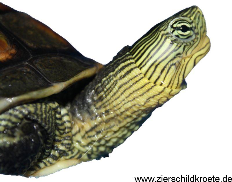 Einige Tage nach dem Schlupf sind Streifenschildkröten durchschnittlich 35-39 mm lang und wiegen 10-13 g (ARTNER 2000). Schlüpflinge haben auffällig lange Schwänze, wie viele Arten der Gattung Mauremys.