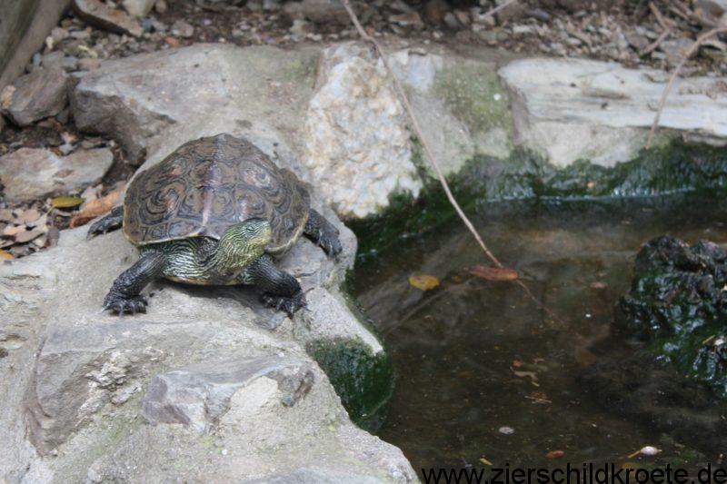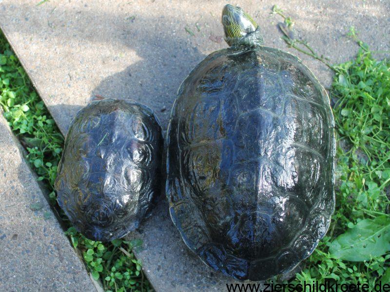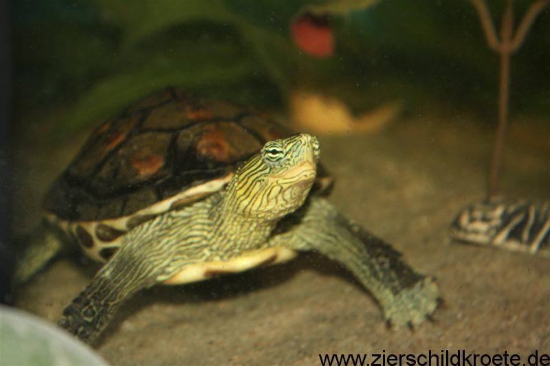 Zur Verpaarung werden die Tiere im Frühjahr für ein paar Tage zusammengesetzt, eventuell auch schon einmal im Herbst. Hat man ein sehr rabiates Männchen, so sollten die Wasserschildkröten nur unter Beobachtung zusammen gelassen werden.Es sind mehrere Gelege pro Jahr mit jeweils fünf bis 20 Eiern möglich.