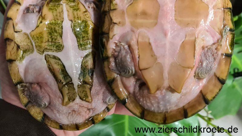 Mit knapp zehn Zentimetern erreichen Dach-Moschusschildkröten die Geschlechtsreife. Etwas vorher kann man bereits das Geschlecht bestimmen. Männchen haben dickere und längere Schwänze als Weibchen.