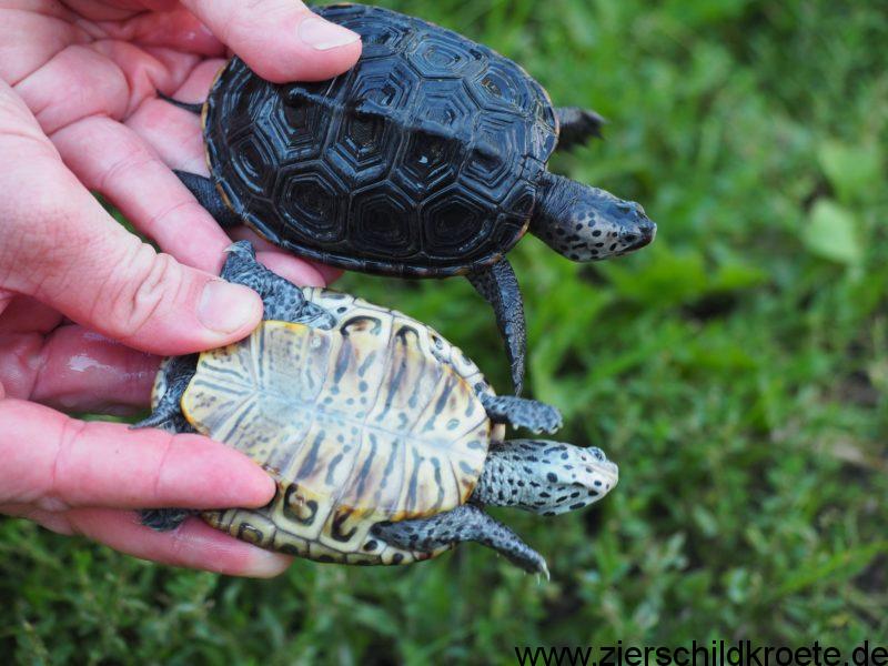 Auf Terraristik-Börsen habe ich in den letzten Jahren zunehmend beobachtet, dass Diamantschildkröten mit einer feinen Punktzeichnung als Malaclemys terrapin terrapin angeboten wurden, während Tiere mit einer gröberen Zeichnung als „concentric“-Tiere oder als Malaclemys terrapin centrata offeriert werden. Beide Zeichnungsvarianten schlüpften bei mir aus einem Gelege, der Verdacht, dass findige Händler und Züchter einen Schwung Diamantschildkröten entsprechend sortieren und zu unterschiedlichen Preisen anbieten, liegt nahe.