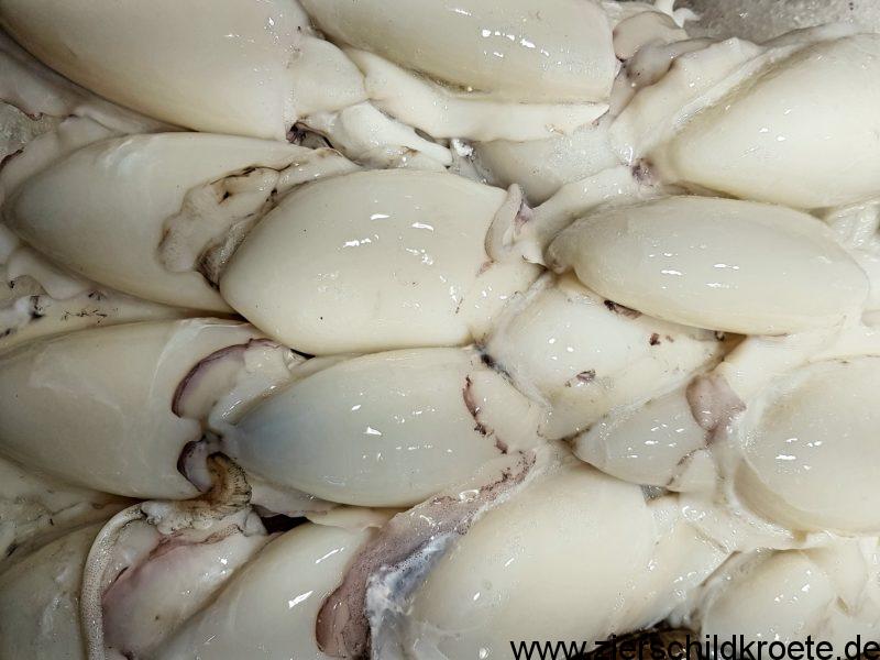 Tintenfisch ist für Mollusken-Fresser, wie Höckerschildkröten oder Diamantschildkröten, besonders geeignet. Aber auch alle anderen Wasserschildkröten fressen gerne Tintenfisch.