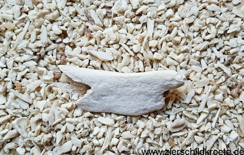 Der Sepiaschulp ist eigentlich ein Knochen von Tintenfischen. An Mittelmeerstränden findet man auch oft Sepia, diese kann man mit nach Hause nehmen und auch seinen Schildkröten anbieten. Übrigens muss Sepia nicht aufwändig gewässert werden. Sicherlich kann da etwas Meersalz enthalten sein, aber durch Wässern sinkt der Salzgehalt nicht. Wenn man sich Sepia im Zoohandel kauft, bitte nicht die rosa schimmernden Schulps kaufen, diese haben einen Vitaminüberzug für Vögel, welcher für Schildkröten ungeeignet ist.