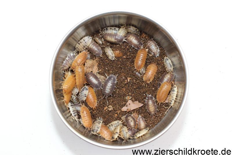 Die Zucht von Asseln ist einfach und eine tolle Ergänzung zum Hobby Wasserschildkröten. Nach meinem Eindruck sind die Panda-Glattassel Porcellio laevis „Panda“ und die Schnabel-Rollassel Armadillidium frontirostre die vermehrungsfreudigsten Asseln und daher als Futtertierzucht ideal, zumal eine Asselzucht nicht so stinkt wie andere Futtertierzuchten.