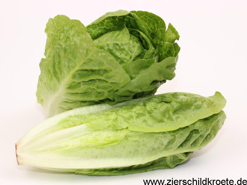 Der schlechte Ruf des Kopfsalates geht vor allem auf das Buch „Ernährung von Landschildkröten*“ von Carolin Dennert zurück. Dort gibt sie für Kopfsalat ein Ca-P-Verhältnis von 1,1 an, noch schlimmer trifft es den Eisbergsalat mit 0,9. Für Römersalat hingegen gibt sie ein Ca-P-Verhältnis von 6,3 an. Daher wird allgemein erzählt, dass man nur Römersalat verfüttern sollte und kein anderen Salat. Genau genommen, sind diese Salate aber nur Zuchtformen von der selben Art.
