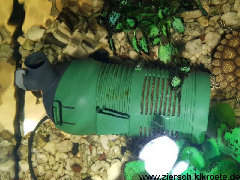 Das Angebot ist groß, ich würde einen einfachen mit einer Schaumstoffpatrone zu bestückenden Innenfilter verwenden. Auch für Innenfilter gilt: Nicht die Pumpenleistung ist entscheidend, sondern die Menge des Filtermaterials! Wenn ich bei meinen Wasserschildkröten Innenfilter verwende, dann sind es meistens Eheim Aquaball*.