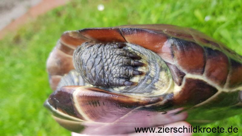 Die Krallenänge hat bei der Geschlechtsbestimmung von Chinesischen Dreikielschildkröten keine Bedeutung, sowohl Weibchen als auch Männchen haben kurze Krallen an den Vorderbeinen.