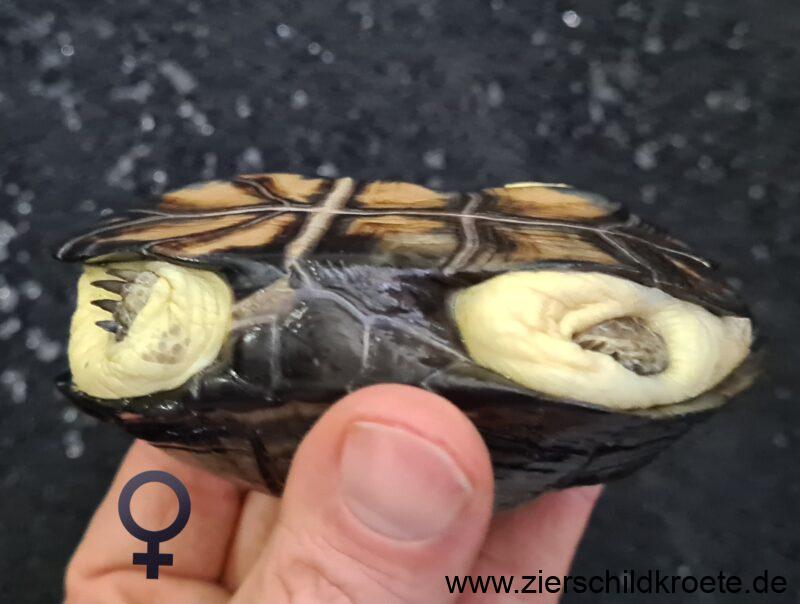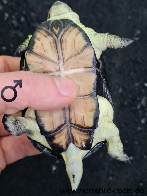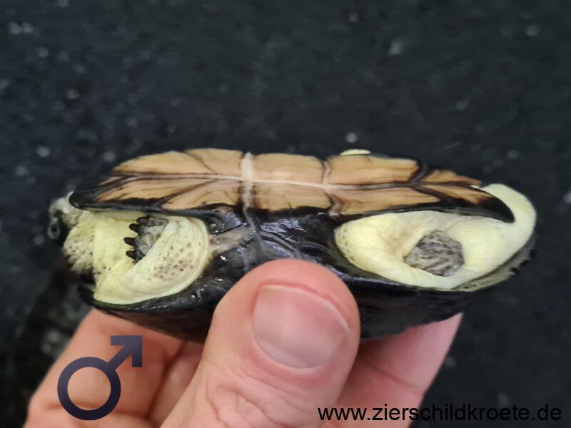 Außerdem haben Männchen noch einen leicht nach innen gewölbten (konkaven) Bauchpanzer (Plastron).