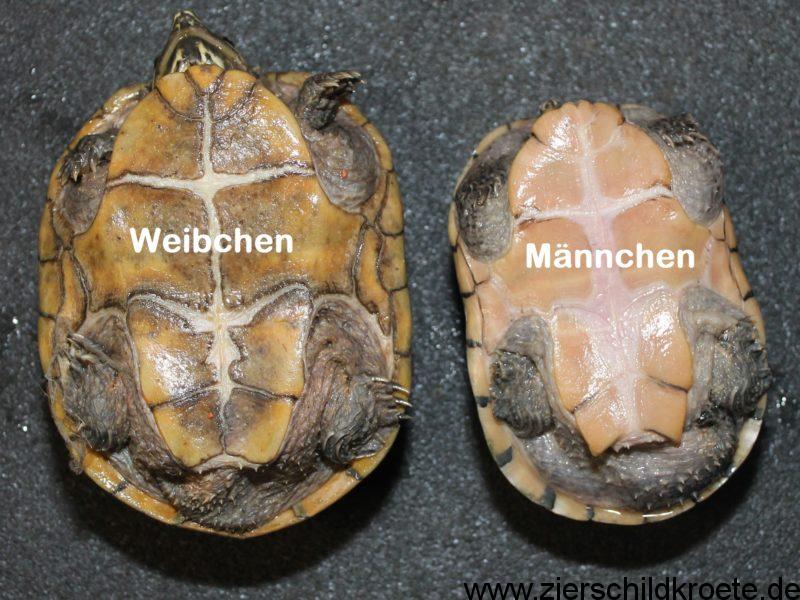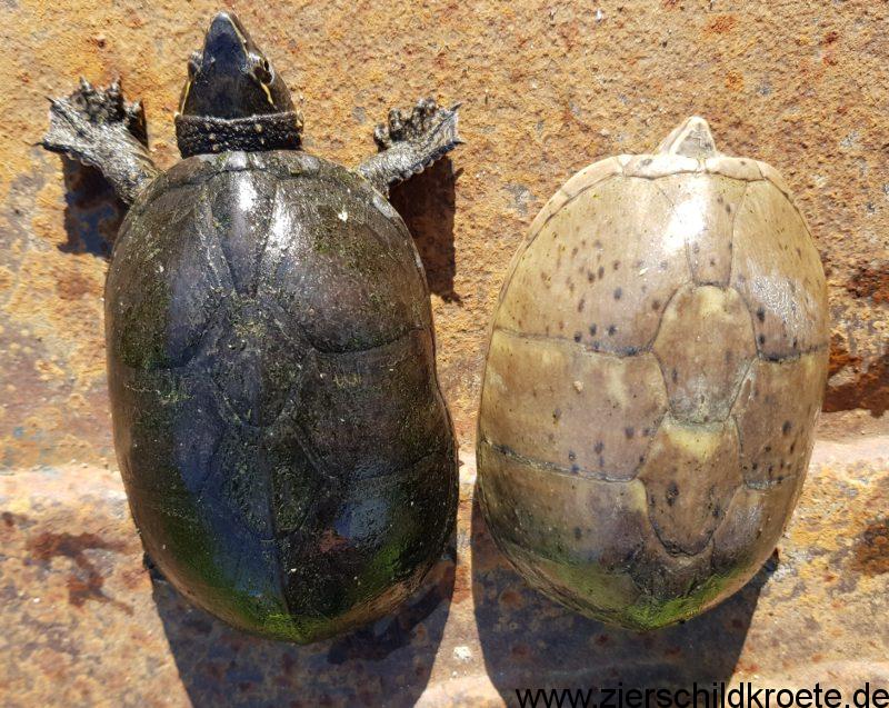 Im Schnitt sind weibliche Moschusschildkröten nicht nur schwerer, sondern auch länger, breiter und höher als Männchen.