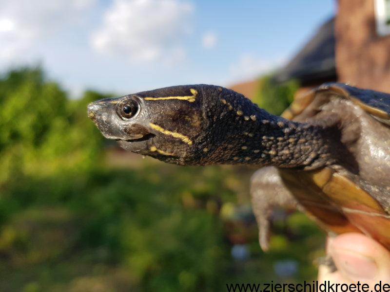 Die Eier werden in einer Tiefe von 5-10 cm abgelegt. Jedes Weibchen kann im Aquarium bis zu sechs Gelege pro Jahr ablegen. Meistens besteht ein Gelege aus zwei bis fünf Eiern, kann aber in Extremfällen auch mal 10 enthalten.