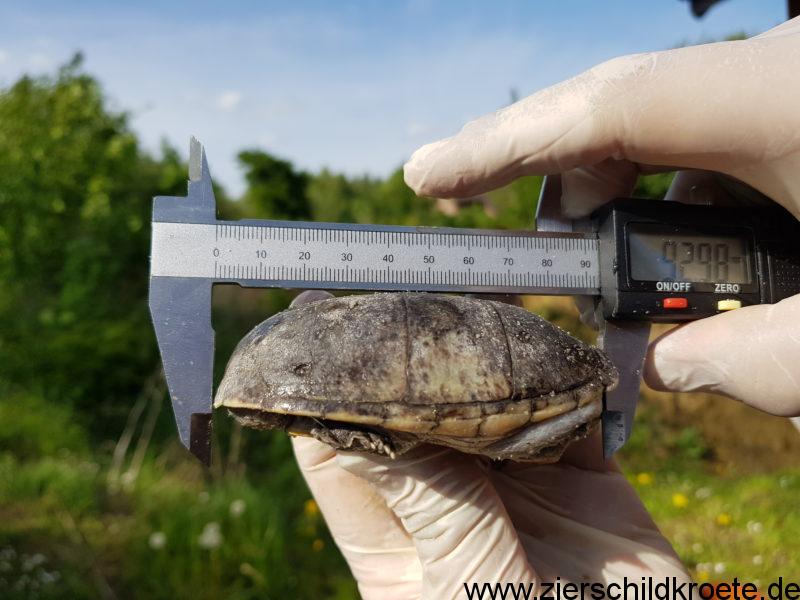 Meine größte Gewöhnliche Moschusschildkröte hat eine Panzerlänge von 11,37 cm. Bei Wasserschildkröten wird immer angegeben wie groß jeweils das größte jemals gefundene Exemplar geworden ist. Aber so groß werden die Tiere in der Regel nicht. Als Heimtier gehaltene Sternotherus odoratus erreichen durchschnittlich folgende Größe (nach WAPELHORST et al. 2019):