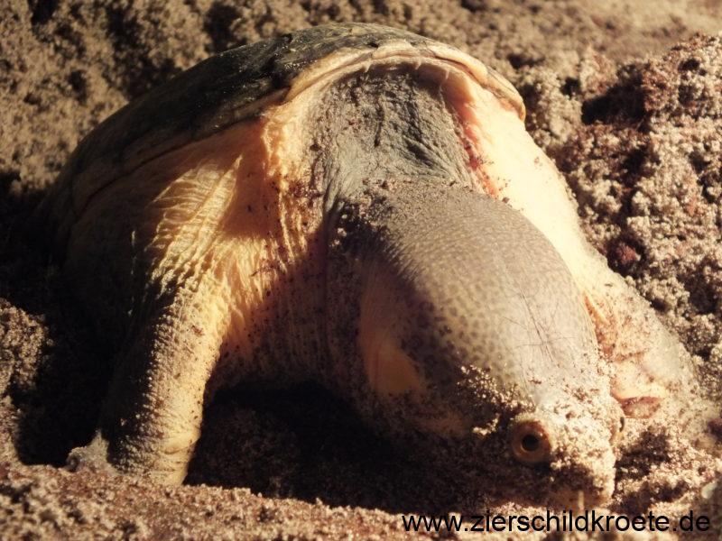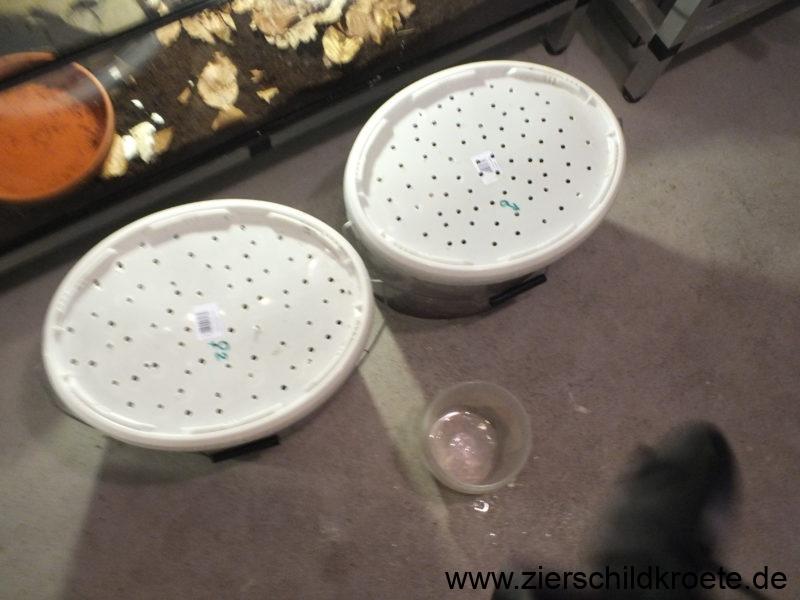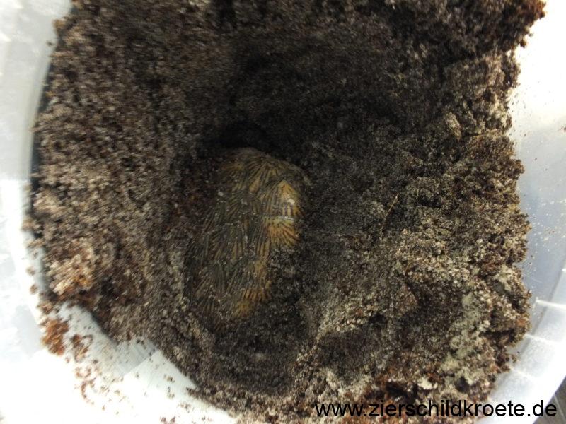 Die Eier auszubrüten birgt weitere Probleme. Es gibt Halter, bei denen Schlüpfen Jungtiere, die ohne besondere Bemühungen bei etwa 28°C in eher trockenem Brutsubstrat liegen. Ich erzielte die besten Erfolge, indem ich die Eier nach der Ablage für 4 Wochen bei 18-20°C aufstellte und erst dann in den warmen Inkubator überführte. So dauerte es in der Regel 160 Tage bis zum Schlupf, in Einzelfällen dauerte es jedoch auch schon an die 300 Tage.