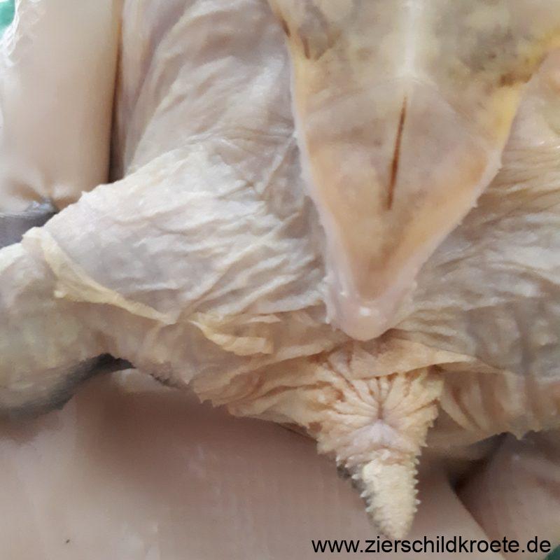 Die Eiablage von 2-10 Eiern erfolgt dann nach etwa 4 Wochen meist nachts. Claudius können erstaunliche und unnatürliche Mengen an Gelegen in Gefangenschaft produzieren. Hier hilft dann die Unterbrechung der fortwährenden Eiablagen alle 4 Wochen durch eine abrupte Trockenruhe.