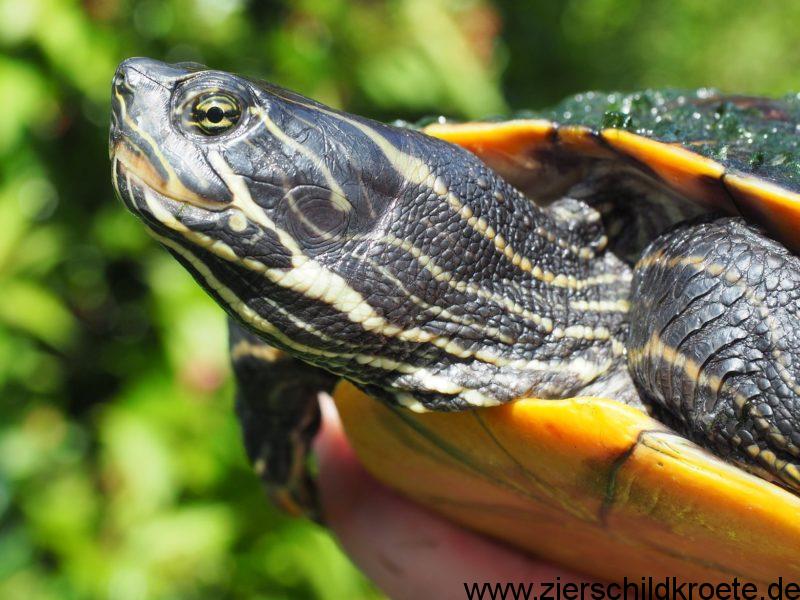 Aufgrund der Größe dieser Wasserschildkröte und der Tatsache, dass viele Hieroglyphen-Schmuckschildkröten ein neues Zuhause suchen, rate ich von der Zucht ab!
