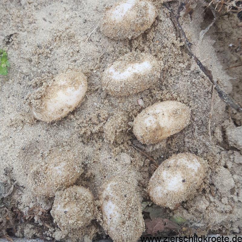 Der mit feuchtem Sand gefüllte Eiablageplatz sollte eine Fläche von 50 x 50 cm haben, bei einer Substrathöhe von 30 cm. Die Eier werden in einer Tiefe von 10 bis 15 cm abgelegt. Jedes Weibchen kann pro Jahr bis zu sechs Gelege produzieren, bei bis zu 30 Eiern pro Gelege.