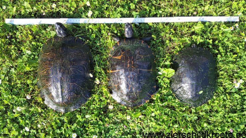 Diese Wasserschildkröten werden groß, sehr groß. Vor der Anschaffung sollte man sich gut überlegen ob man später einmal Platz für ein riesiges Aquarium hat, denn Panzerlängen von 30 cm sind auch im Aquarium keine Seltenheit. Oft werden die Tiere sogar noch größer, bis zu 40 cm Panzerlänge sind möglich. Ok, ich habe bei den Weibchen etwas übertrieben, die größte bekannte Hieroglyphen-Schmuckschildkröte war 39,7 cm groß. Das größte Männchen von Pseudemys concinna concinna 31,6 cm (ERNST & LOVICH 2009).