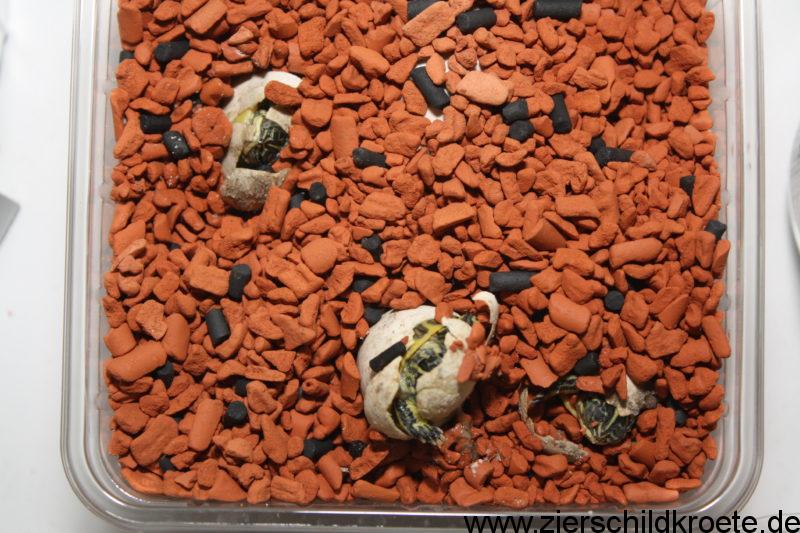 Zunächst werden die Eier normal bei etwa 27-31°C bebrütet, nach zwei bis drei Wochen werden die Eier dann zur Diapause auf 18-20°C für vier Wochen abgekühlt. Danach hebt man die Temperatur wieder, nach einer Brutdauer von 70 bis 156 Tagen schlüpfen die Jungtiere.