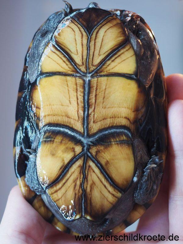 Für ein ausgewachsenes Weibchen dieser Klappschildkröten muss das Aquarium eine Größe von mindestens 80 x 40 x 40 cm haben, der Wasserstand sollte 30-40 cm betragen. Die Männchen sind nur etwas kleiner, es wird aber ja kein Raum für den Eiablageplatz verloren, daher ist für sie auch schon ein Aquarium ab einer Größe von 60 x 30 x 30 cm geeignet, aber auch für sie ist ein 80 cm-Aquarium zu empfehlen.