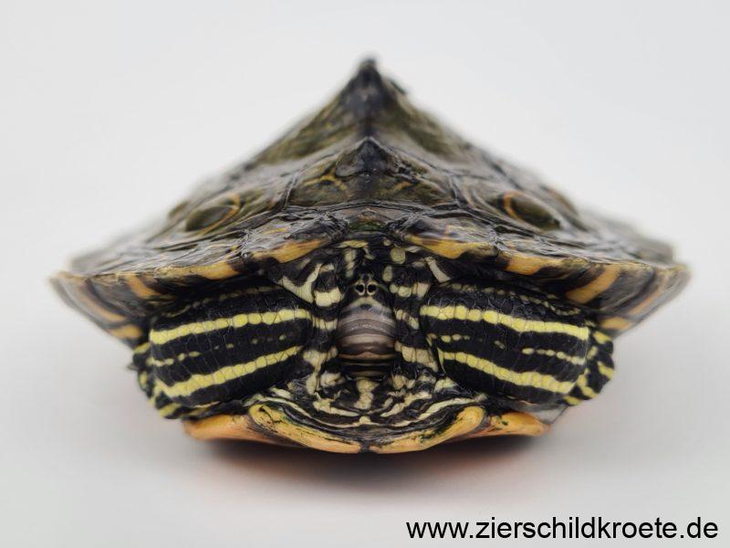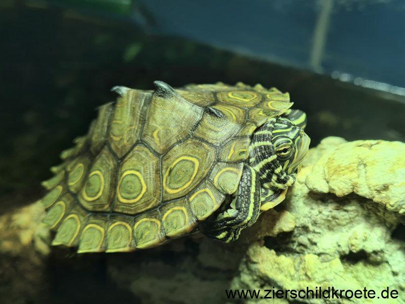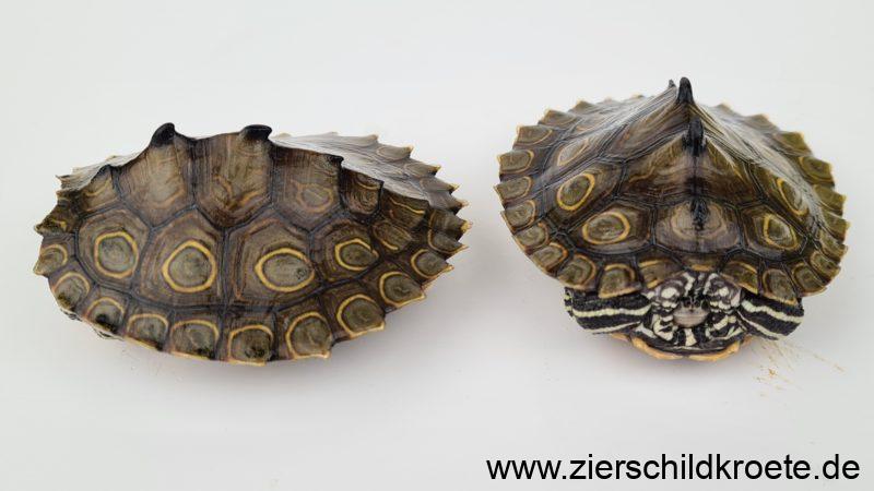 Graptemys oculifera gehört zu den sogenannten Sawback-Arten. Das sind kleinbleibende Höckerschildkröten mit kleinen Köpfen und gezacktem Panzerrand.