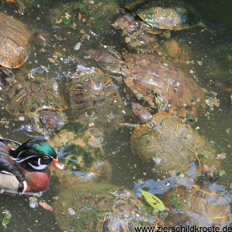 Oftmals wird für Rotwangen-Schmuckschildkröten die Haltung im Gartenteich empfohlen, so ideal ist das aber nicht. Auf der Seite Überwinterung von Wasserschildkröten im Gartenteich vergleiche ich das Klima in der Heimat mit unserem deutschen Klima.