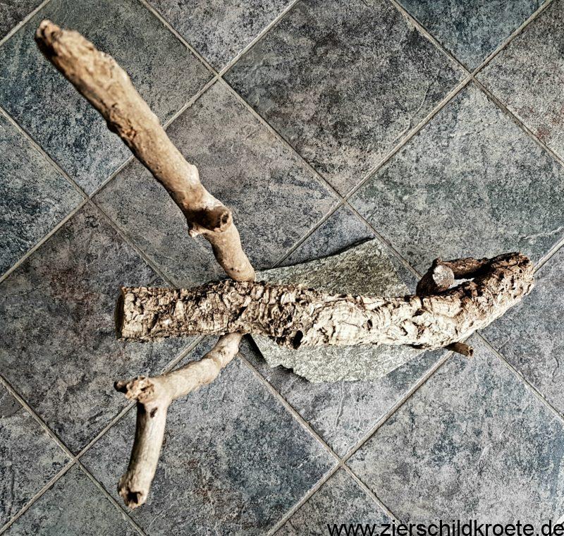 In der Natur sonnen sich Wasserschildkröten gerne auf Treibholz, also in das Wasser gefallenes Holz. Aus solchem Holz, das man am Fluss oder See sammeln kann, kann man ein wunderbares Landteil für Wasserschildkröten basteln.