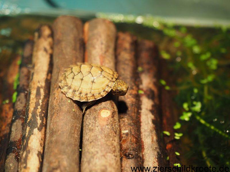 Wichtig ist, dass die Baby-Schildkröten die Wasseroberfläche kletternd erreichen können, durch entsprechende Gestaltung mit Wurzeln oder Steinen. Sonst besteht potentiell die Gefahr, dass sie ertrinken.